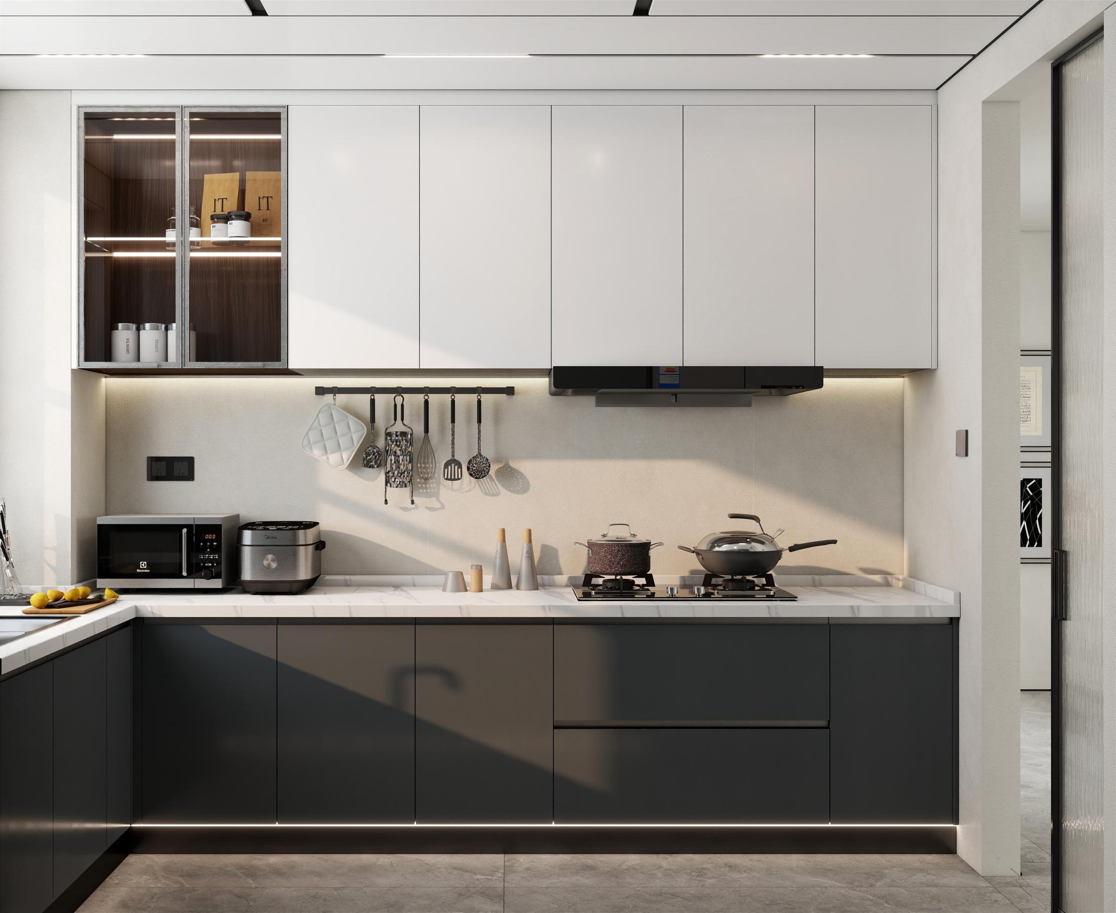 【空间定位】品质顾客;意式极简;产品大面积灰色门板搭配深色木纹,硬装再以咖色中和冷调,打造咖色系品质空间;